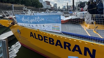 Das Forschungsschiff ALDEBARAN wird als Nachhaltigkeitsbotschafter auf den Gewässern des Rheins vom Bodensee bis zum Meer eingesetzt und sensibilisiert in den Häfen für das Thema Nachhaltigkeit.