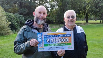 Der Baumsachverständige Christian Eppinger und Robert London, Vizepräsident Golfclub Düren, freuen sich über die Unterstützung der Deutschen Postcode Lotterie, die das Projekt dank ihrer Teilnehmenden in Nordrhein-Westfalen mit 30.000 Euro gefördert hat: „Ohne die Unterstützung der Postcode Lotterie wäre es nicht möglich gewesen, die umfassenden Arbeiten zur Pflege und den Erhalt der Bäume in dieser Form durchführen zu lassen.“