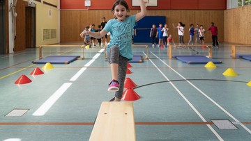 Das Projekt Bunter Ball begleitet die Kinder während ihrer gesamten Grundschulzeit, 90 Minuten pro Woche. Und wenn man die Kinder in der Turnhalle eine Weile beobachtet, dann macht diese laut Internetprofil "sportpädagogische AG im rhythmisierten Ganztag" ganz offensichtlich auch eine ganze Menge Spaß.