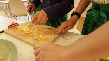 Der Verein bildet an mehreren Schulen „MiniESSpert*innen“ aus. Diese lernen das Handwerk des Kochens, erkennen die Zusammenhänge von Umwelt, Essen und Gesundheit und tragen dieses Wissen in ihr Umfeld.