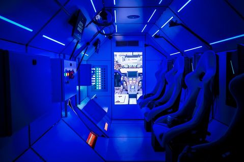 Das **Spacebuzz-**Programm besteht aus 12 Unterrichtseinheiten, so genannten Missionen. In dieser Vorbereitungsphase werden die Schülerinnen und Schüler in den Themen Technologie und Nachhaltigkeit unterrichtet und sie bereiten sich, wie echte Astronauten, auf ihre ganz eigene Weltraummission vor. Diese startet an Bord der SpaceBuzz-Rakete, einem über 18 Meter langen Raketenfahrzeug, welches direkt zu den Schulen kommt und mit der neuesten Virtual-Reality-Technologie ausgestattet ist. Durch diese lebensechte Weltraumfahrterfahrung erhalten die Kinder eine völlig neue Perspektive auf unseren Planeten. Sie tauchen in eine Welt ein, die bisher nur Astronaut*innen erleben durften.