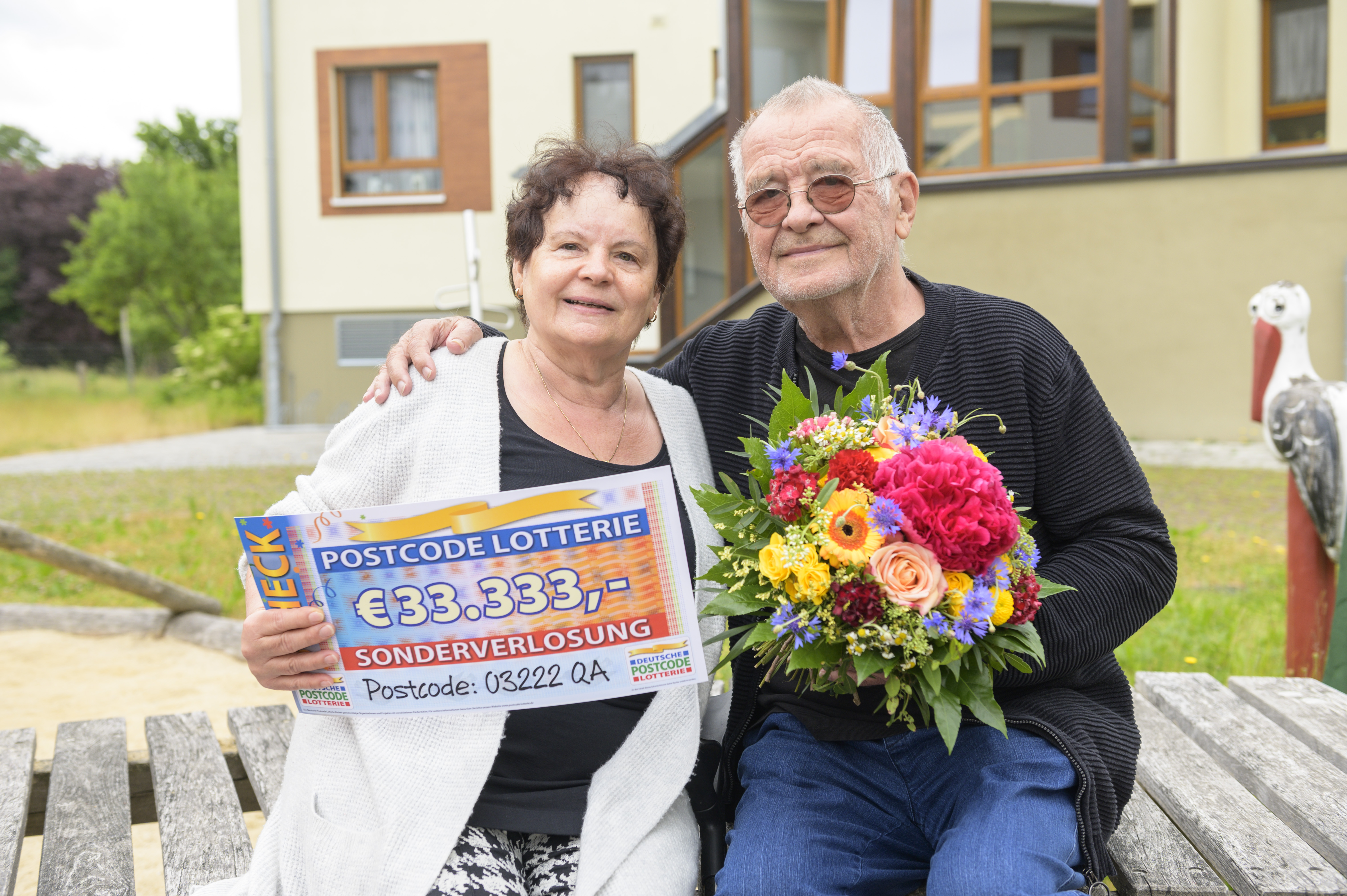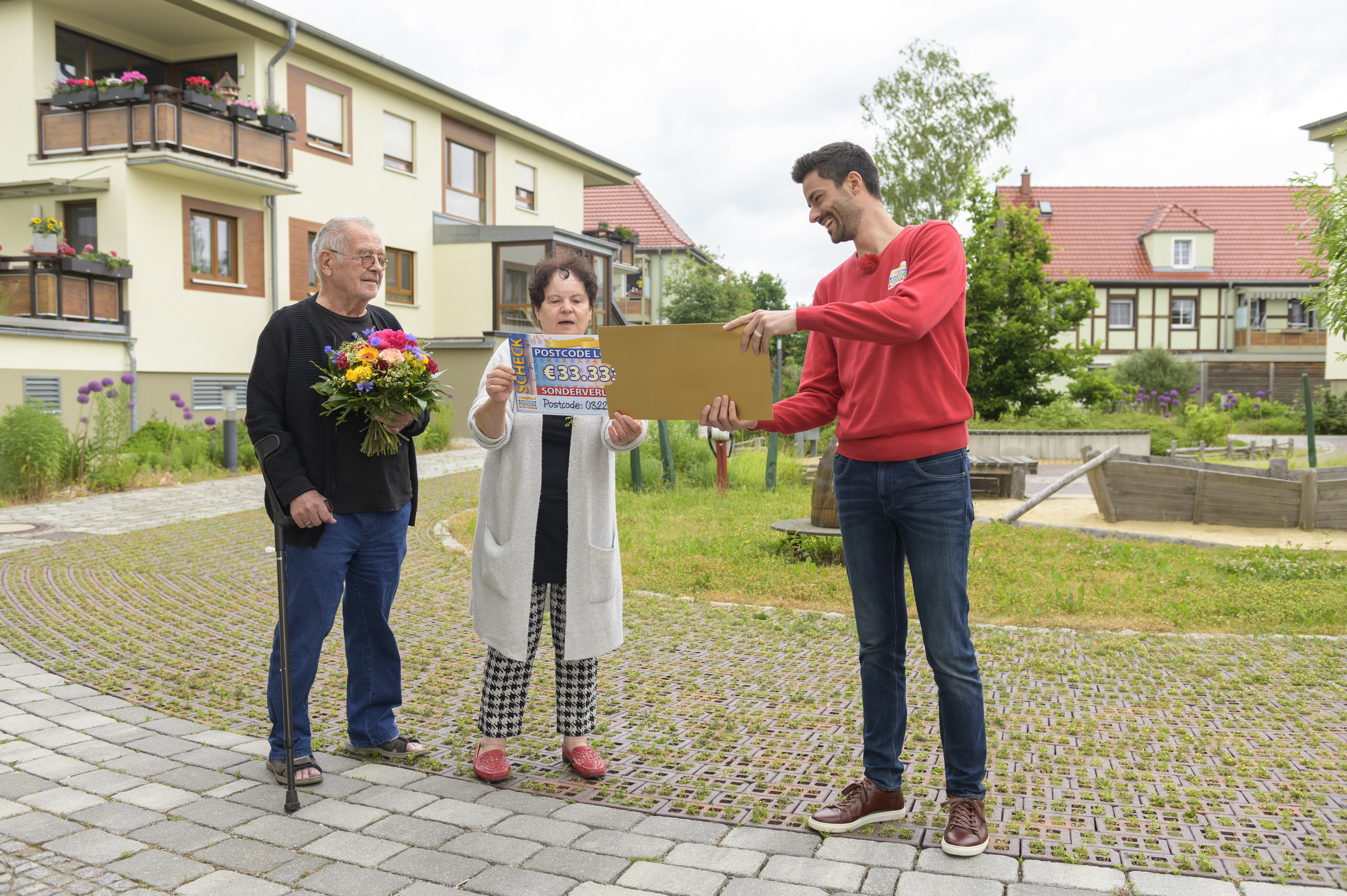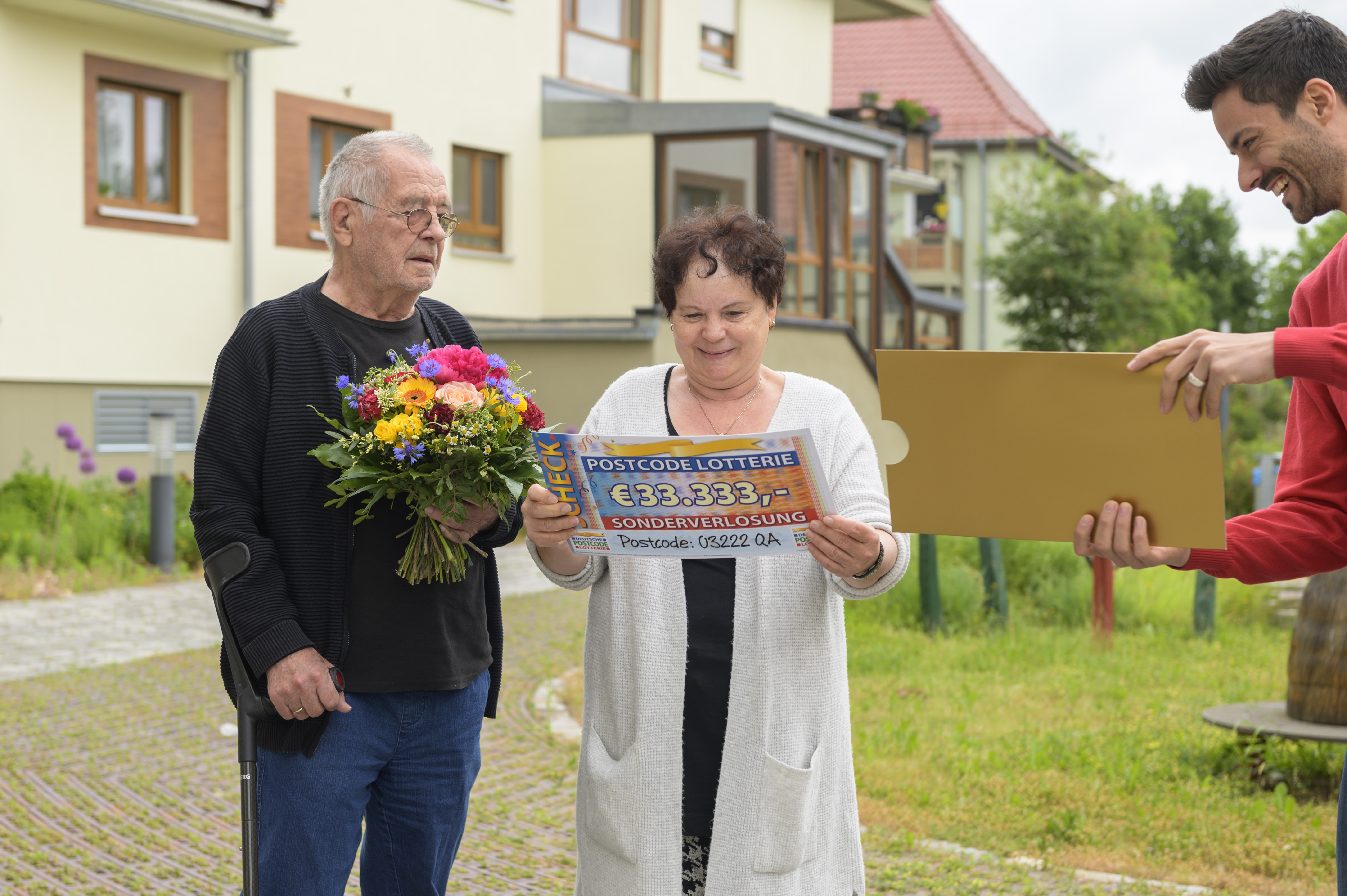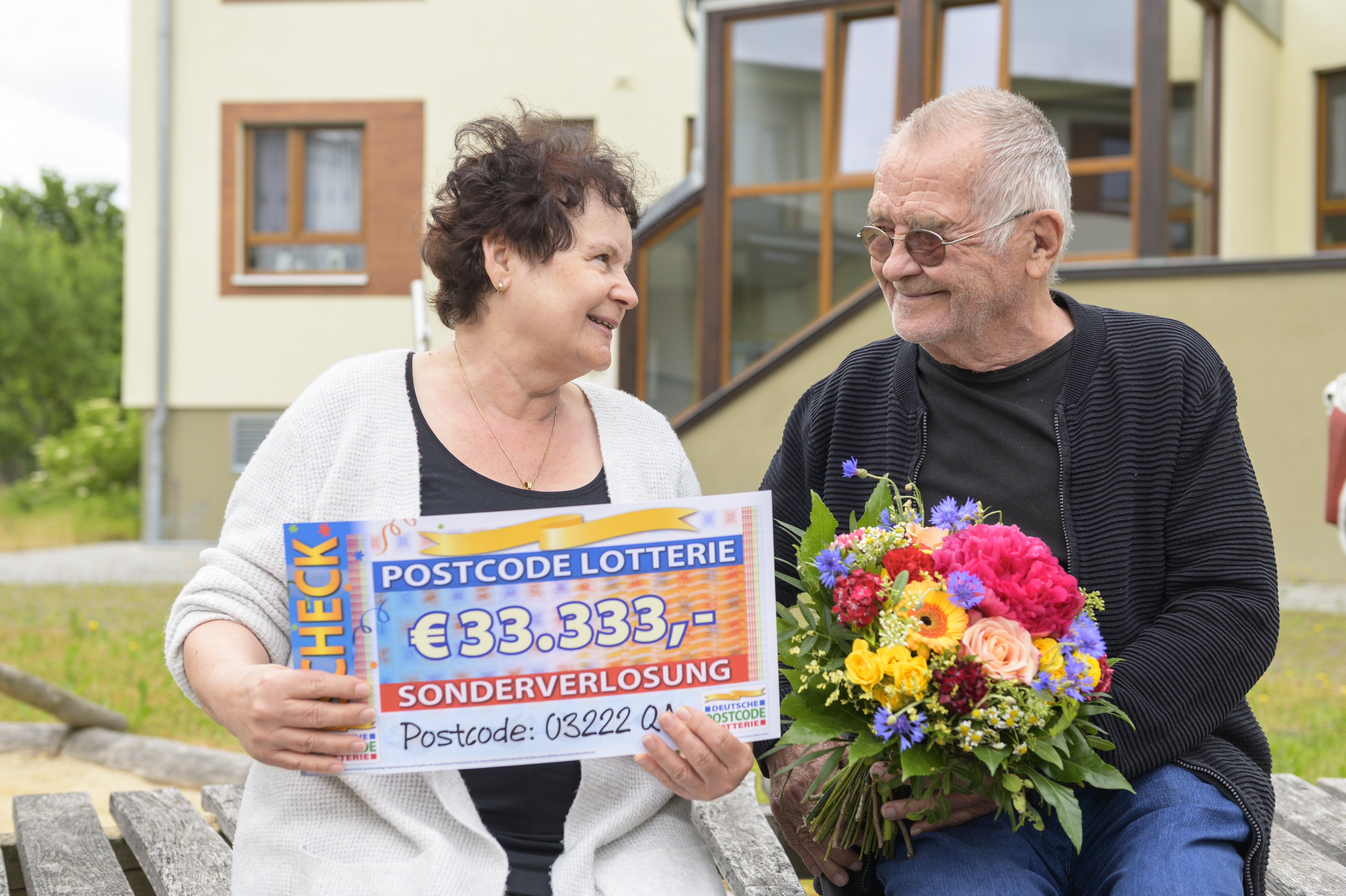 „03222 QA – wer zieht denn so einen Postcode?“, hatte Marthas Mann Reiner ihren Loskauf im Herbst 2019 amüsiert kommentiert. Jetzt stellt sich unter Beweis, dass bei uns jeder Postcode eine gute Chance hat. Martha strahlt bereits vor Freude, als Giuliano vor ihrer Tür steht, doch als sie dann sieht, wie viel sie gewinnt, ist die Freude riesig. 33.333 Euro! Was für eine Summe! „Ich kann es gar nicht beschreiben. Es ist einfach überraschend“, jubelt die Rentnerin. Unsere Gewinnerin hat ein großes Herz und denkt zunächst an ihre Lieben, als Giuliano sich nach ihren Plänen mit dem Geld erkundigt: „Ich denke gleich an meine Enkel. Da geht sicher was hin – für die Ausbildung und so. Und dann machen wir nochmal Urlaub.“ So eine Oma hätte doch jeder gern. Doch auch Ehemann Reiner freut sich und schmunzelt: „Ich hab jetzt `ne reiche Frau!“ Da gratulieren wir beiden herzlich.