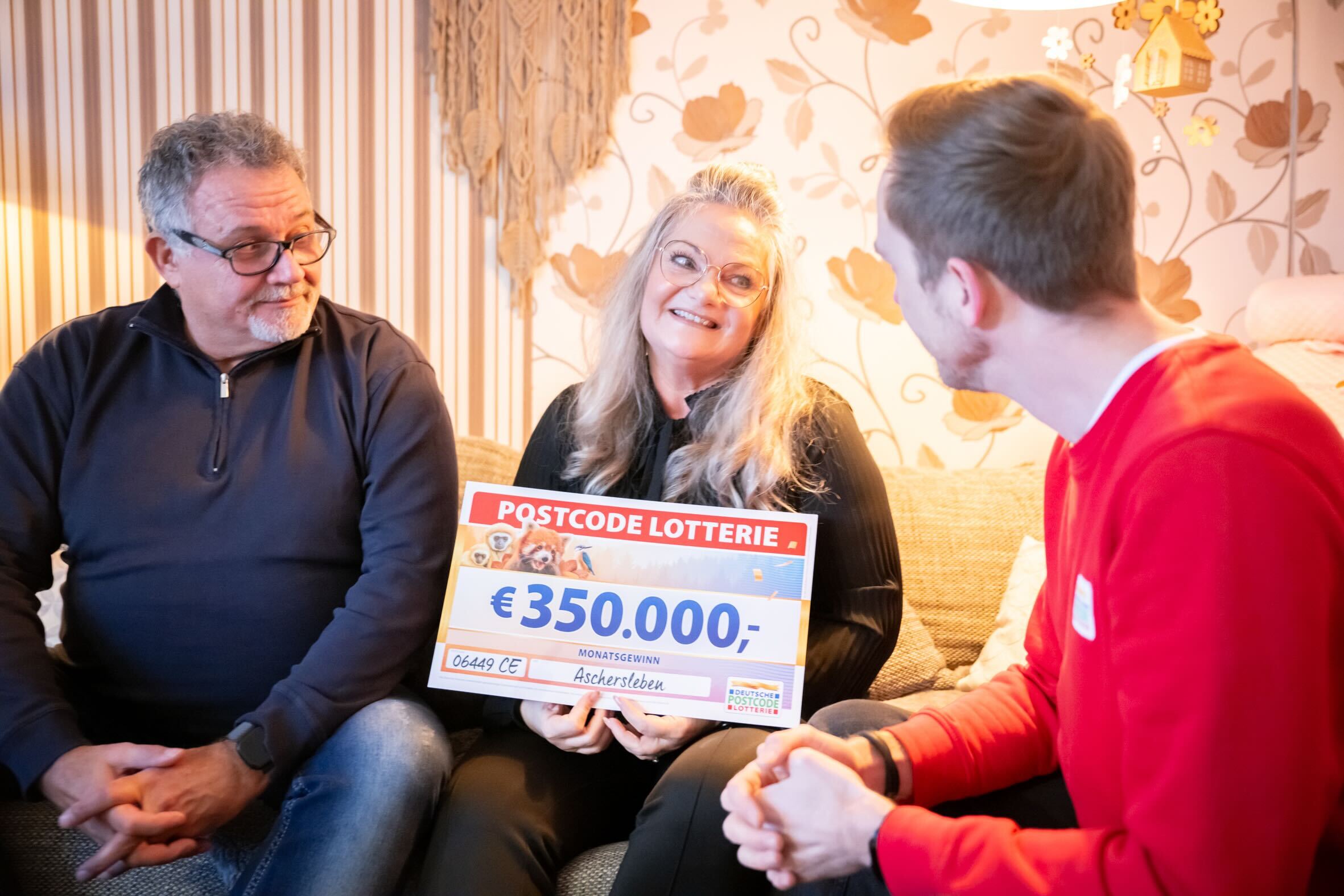 Bereits im Februar dieses Jahres jubelten mehrere Hundert Glückspilze in Aschersleben über den Monatsgewinn der Deutschen Postcode Lotterie – nun geht dieser zum zweiten Mal in die Stadt im Salzlandkreis: 864 Gewinner*innen freuen sich über den Dezember-Monatsgewinn in Höhe von insgesamt 1,4 Millionen Euro. Besonderen Grund zur Freude haben die beiden Nachbar*innen Ines* und Knut* – denn sie gewinnen dank ihres gezogenen Postcodes 06449 CE jeweils 350.000 Euro. Auch der gute Zweck gewinnt bei der Soziallotterie immer mit: Dank der Teilnehmer*innen in Sachsen-Anhalt konnte die Postcode Lotterie in dem Bundesland bereits 161 soziale und grüne Projekte mit über 7.7 Millionen Euro fördern.