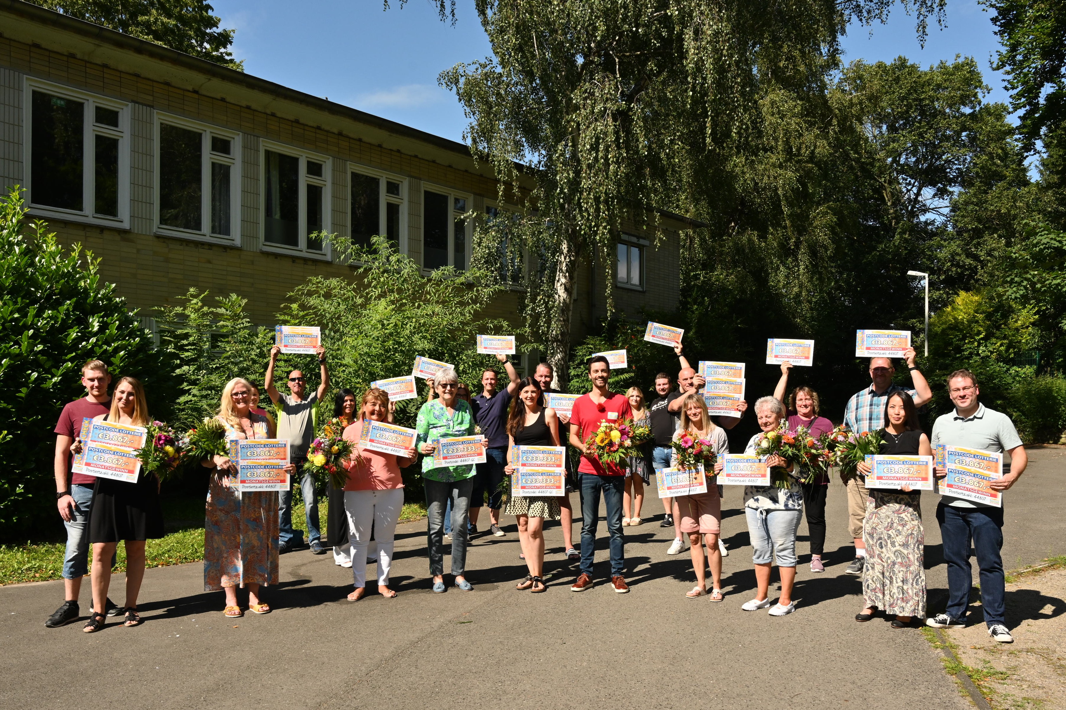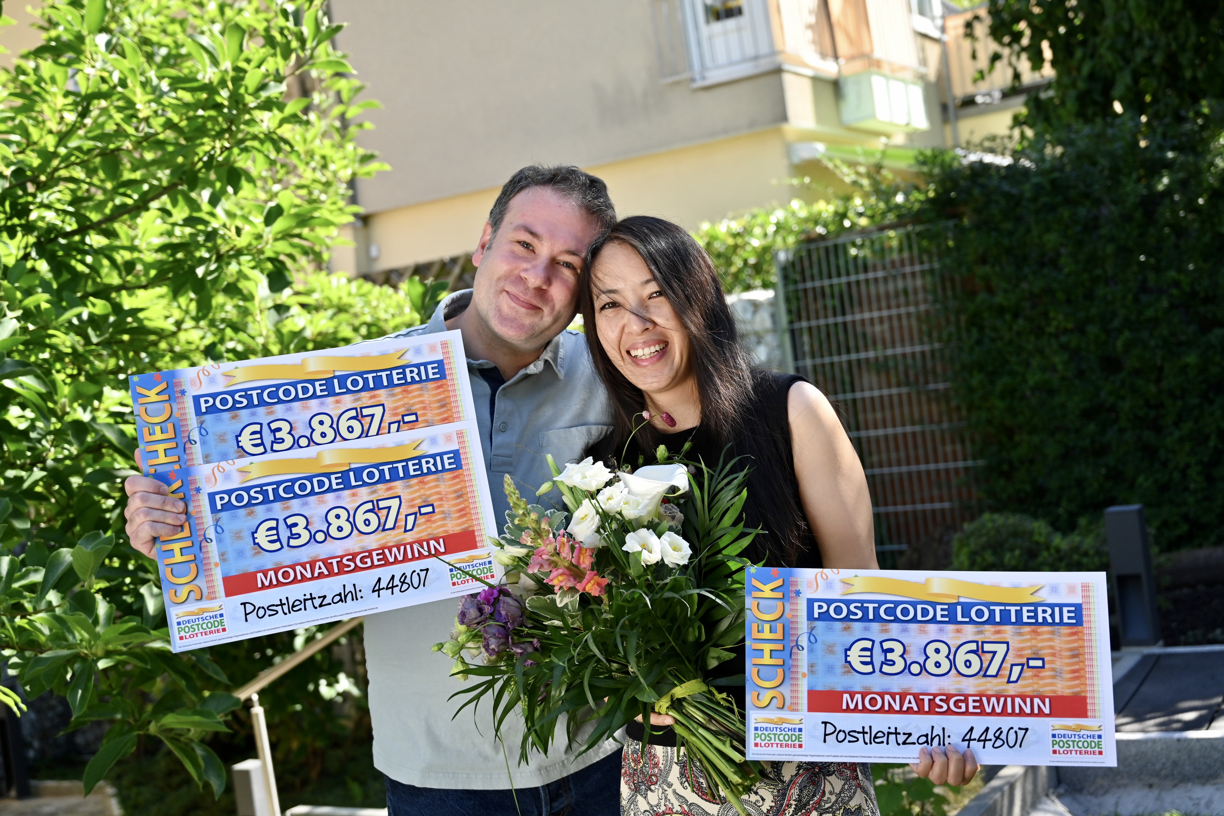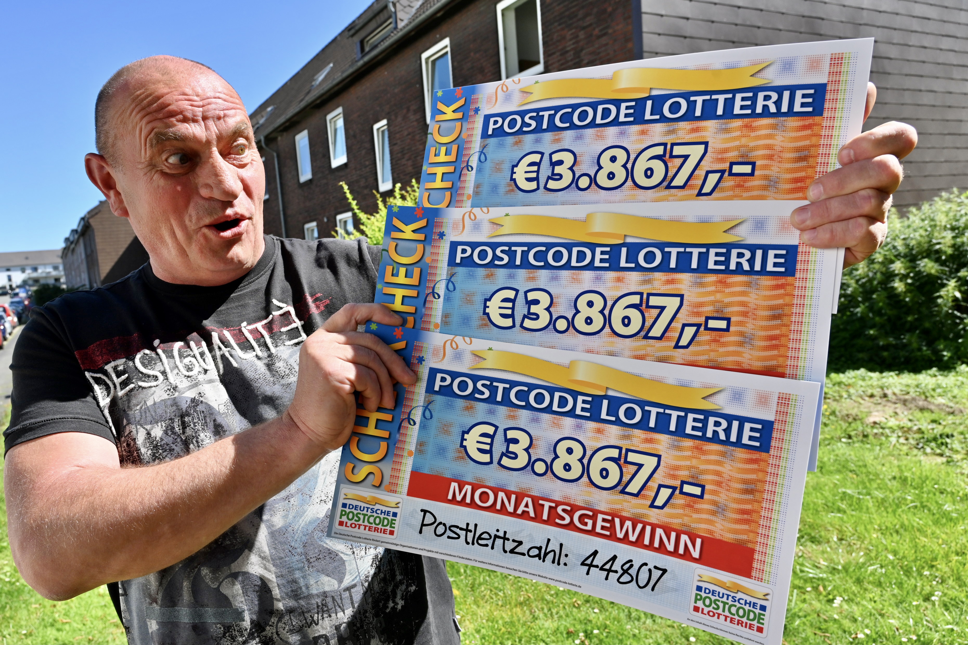 Im August geht der Monatsgewinn in Höhe von 1,4 Millionen in den Postcode 44807 GC. Die Gewinnsumme teilen sich alle Lose mit dem gezogenen Postcode sowie die Lose mit der darin enthaltenen Postleitzahl. In Bochum sind so nicht nur Udo und Ursula dank ihrer Lose im Freudentaumel, weitere 700.000 Euro teilen sich 139 Personen mit insgesamt 181 Losen – jedes Los gewinnt damit 3.867 Euro. Der zweifachen Losbesitzerin Sigrid* kommen vor Freude über 7.734 Euro sogar die Tränen. „Ein Traum! Ich habe mein ganzes Leben noch nie etwas gewonnen.“, jubelt die 60-jährige Schuhverkäuferin. Ein paar Straßen weiter gewinnt Piotr* mit drei Losen sogar 11.601 Euro. Während der 56-jährige Fliesenleger schon Urlaubspläne schmiedet, möchte Thomas* (43) seine Freude über dieselbe Gewinnsumme künftig mit seinen Nachbarn teilen: „Kauft euch auch Lose und unterstützt damit etwas Gutes. Ich bin total happy.“
