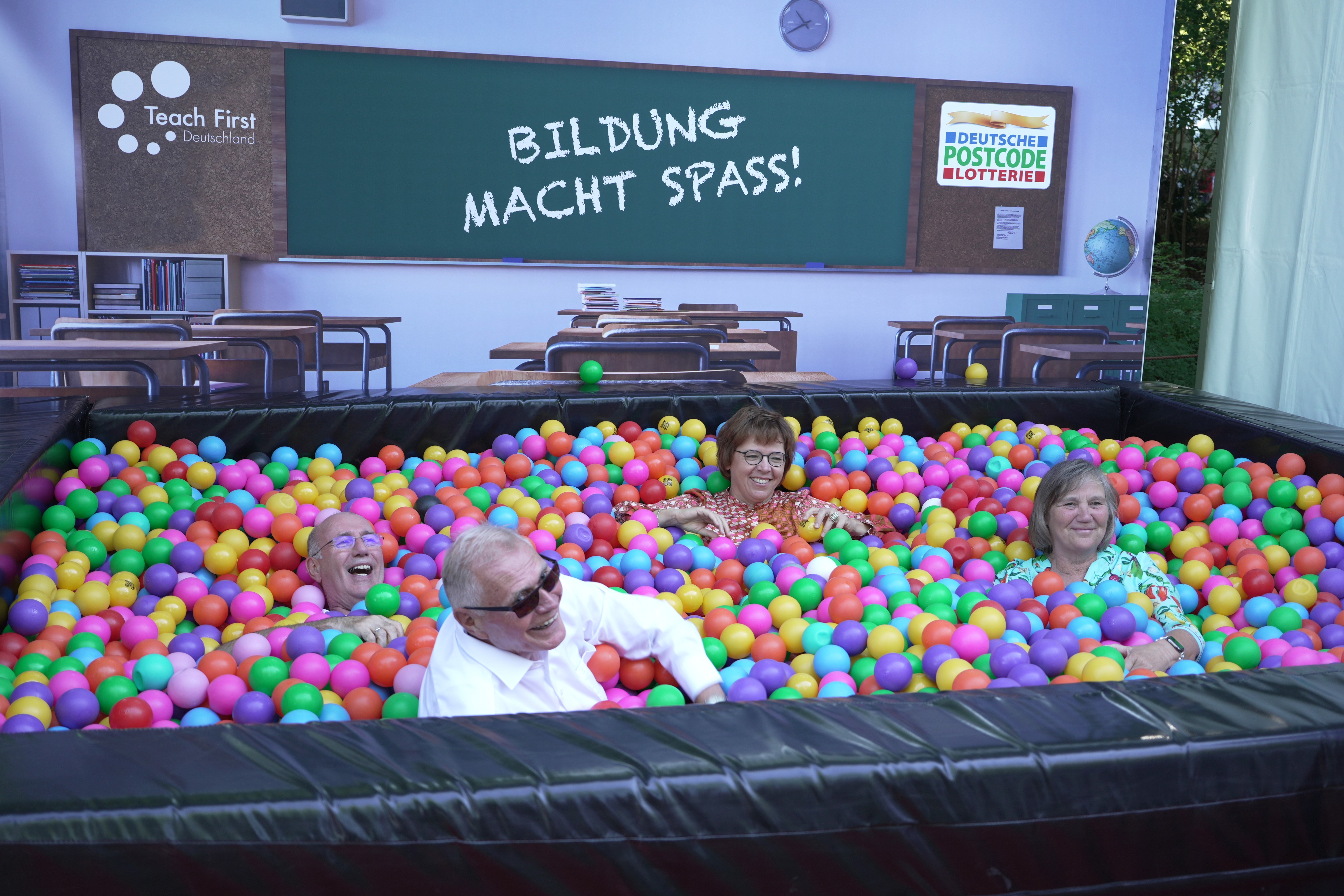 Dankbar waren die Besucher*innen des Bürgerfests auch für das fantastische Wetter. Bei hochsommerlichen Temperaturen machten viele von ihnen Halt am Aktionsstand der Deutschen Postcode Lotterie. Zwar fanden sie dort keine Abkühlung von den heißen Temperaturen aber jede Menge Spaß im bunten Bällebad der Soziallotterie
