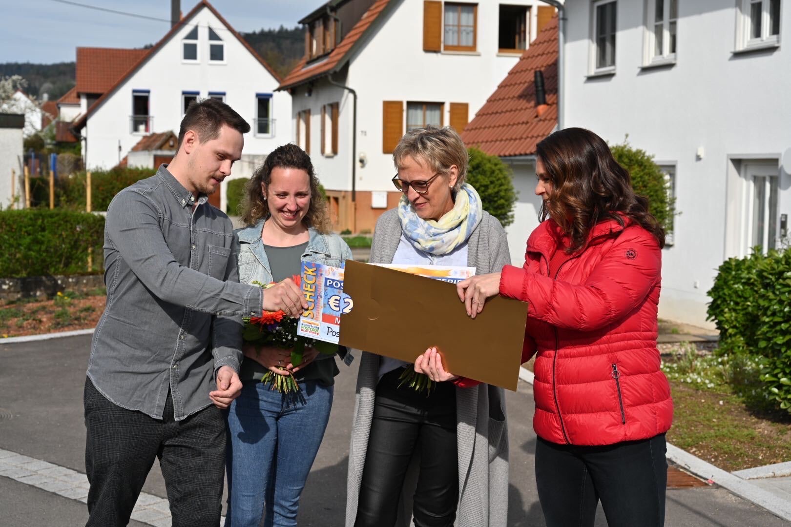 „Für mich ist es immer etwas Besonderes, den Monatsgewinnern diese tolle Nachricht persönlich zu überbringen“, sagt Katarina Witt und strahlt mit den Gewinner*innen. „Gerade in diesen herausfordernden Zeiten ist es schön zu sehen, wie viele Menschen zusammen mit ihrer Nachbarschaft feiern und sich nun kleine wie große Wünsche erfüllen können.“