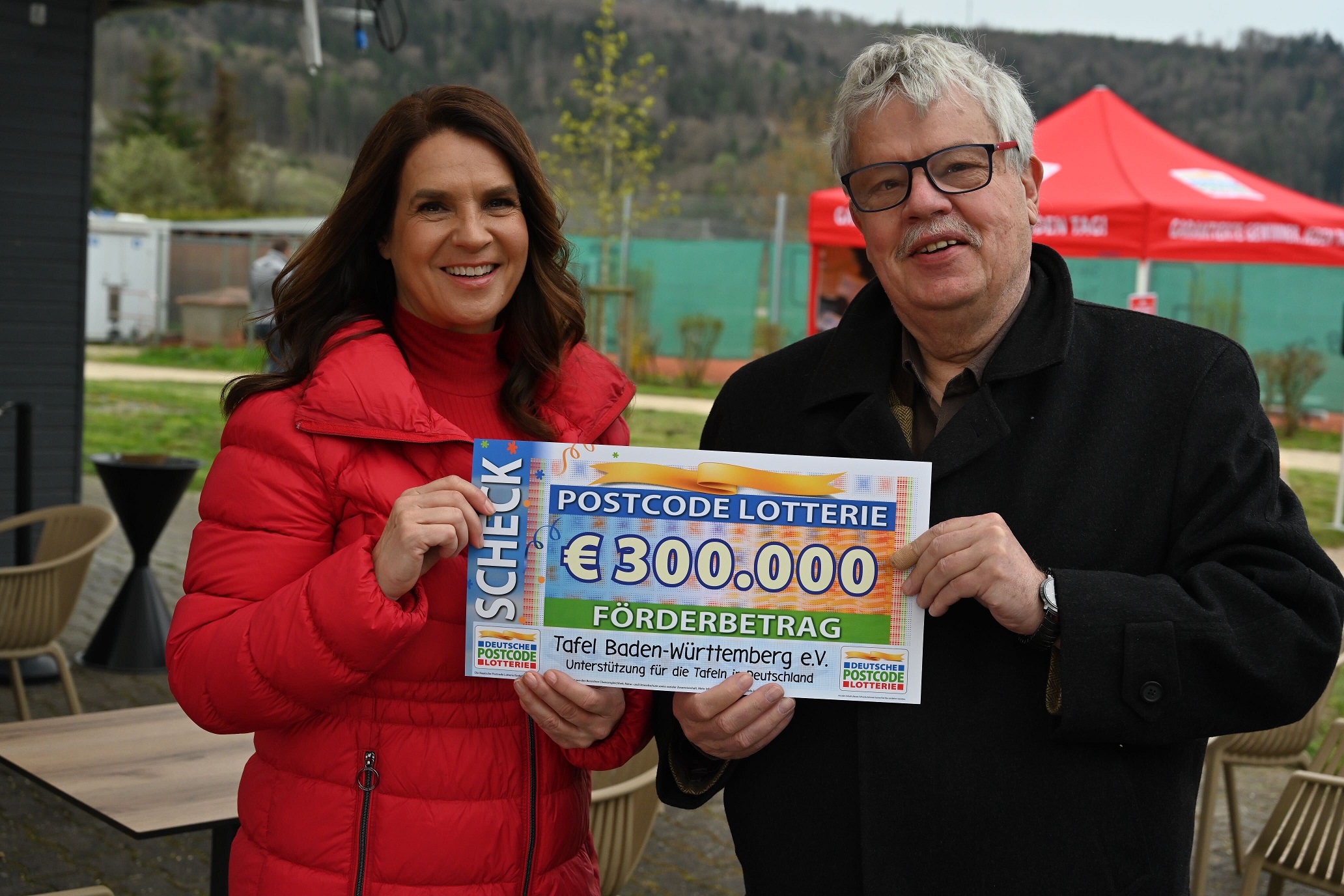 Der gute Zweck gewinnt bei der Deutschen Postcode Lotterie immer. Denn nicht nur die Gewinner*innen in Plüderhausen dürfen sich freuen – alle Teilnehmer*innen in Baden-Württemberg machen mit ihren Losen die Welt zu einem besseren Ort für Mensch und Natur: Seit Gründung der Soziallotterie 2016 konnten in dem Bundesland bereits knapp 16 Millionen Euro für 420 soziale und grüne Projekte bereitgestellt werden. Darunter auch der Tafel-Landesverband Baden-Württemberg, dessen Vorsitzender Wolfhart von Zabiensky von Lotterie-Botschafterin Katarina Witt mit einem Förderscheck in Höhe von 300.000 Euro überrascht wird. „Besonders freut es mich, dass ich dem Tafel-Landesverband Baden-Württemberg einen großen Scheck für ihre so wichtige Arbeit überreichen konnte und damit die Hilfe genau dort ankommt, wo sie derzeit am Dringendsten benötigt wird.“