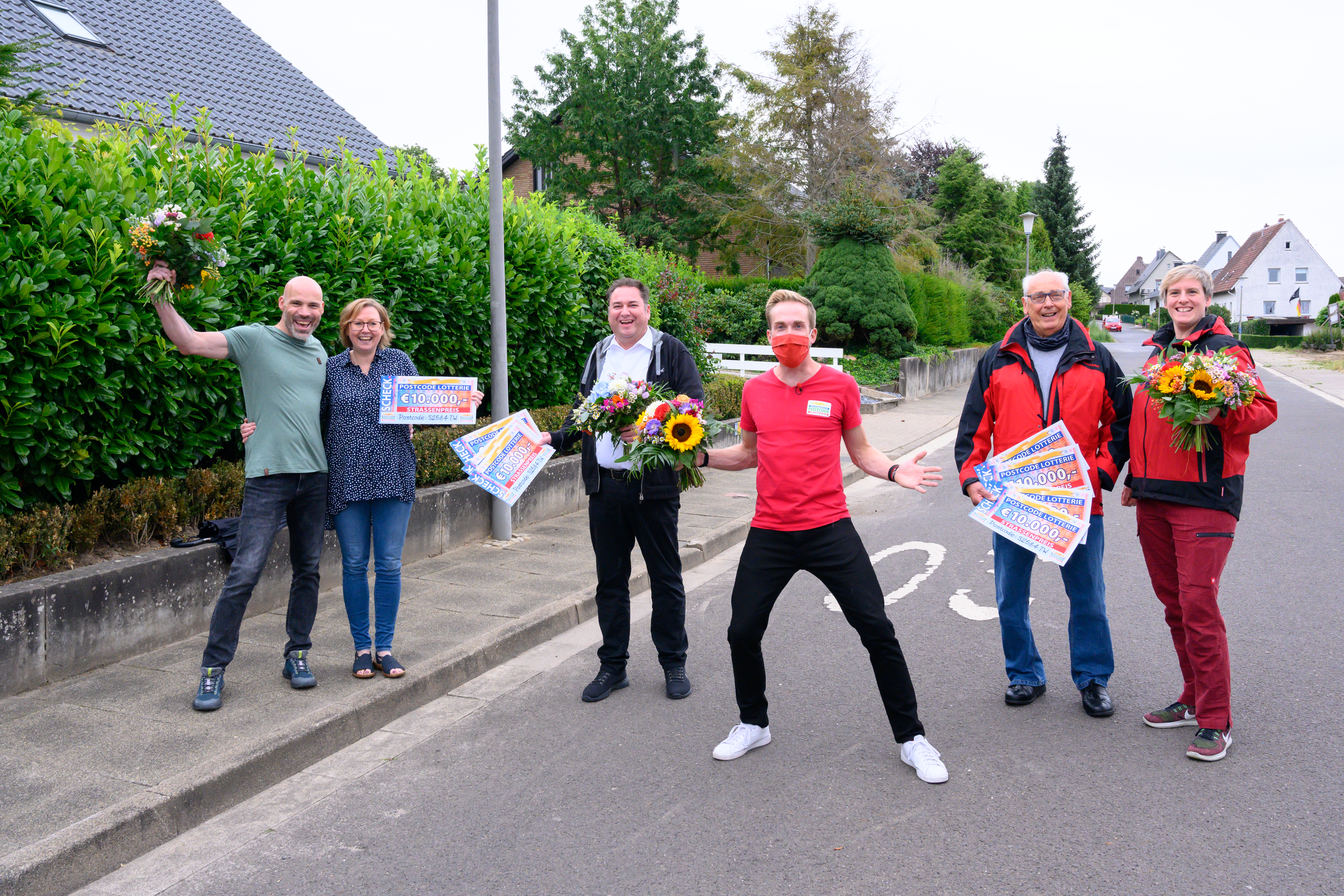 Das hat es noch nie gegeben! Der fünfte Straßenpreis der Deutschen Postcode Lotterie im Juli geht an fünf Glückliche im nordrhein-westfälischen Löhne. Im gewinnenden Postcode 32584 TW nehmen sie mit insgesamt neun Losen teil. Jedes Los erhält 10.000 Euro, sodass sich die Löhner über insgesamt 90.000 Euro freuen dürfen. Und das Schönste dabei: Die fünf Gewinner wohnen alle in derselben Straße und feiern ihren Gewinn gemeinsam.