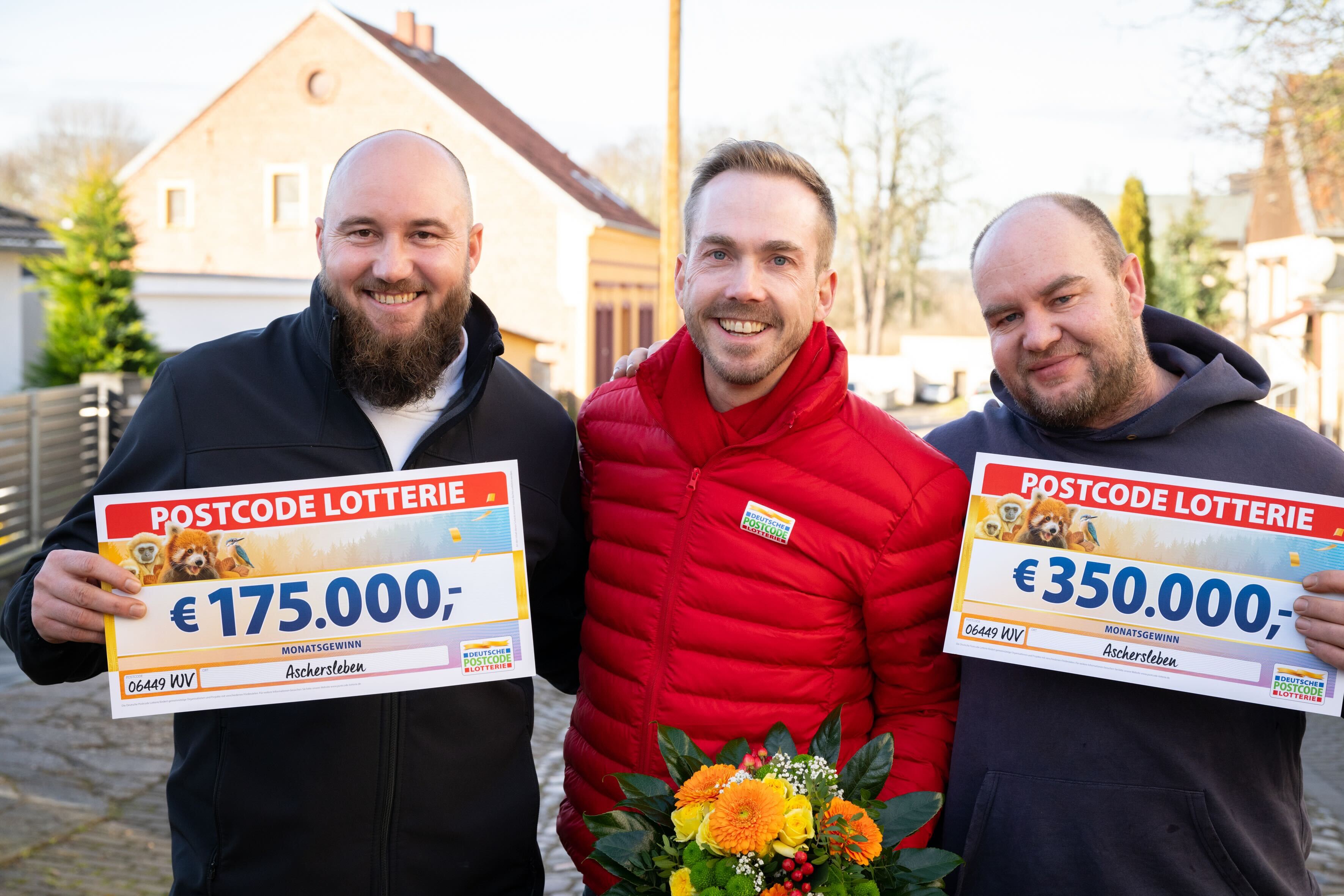 Neben Normen und Patrick freut sich noch eine weitere Nachbarin über einen Gewinn von 175.000 Euro. Und mit den drei Postcode-Gewinner*innen, die sich insgesamt 700.000 Euro teilen, jubelten 433 weitere Glückspilze, deren Postcode zwar nicht gezogen wurde, die aber mit ihren Losen in der dazugehörigen Postleitzahl 06449 teilnehmen. Sie teilen sich mit ihren insgesamt 565 Losen ebenfalls 700.000 Euro, was 1.238 Euro pro Los entspricht. Da einige unter ihnen nicht nur ein Lotterie-Los, sondern zwei oder gar drei besitzen, gewinnen sie auch die doppelte bzw. dreifache Summe. 78 Gewinner*innen dürfen sich somit über 2.476 Euro freuen, 27 über 3.714 Euro.