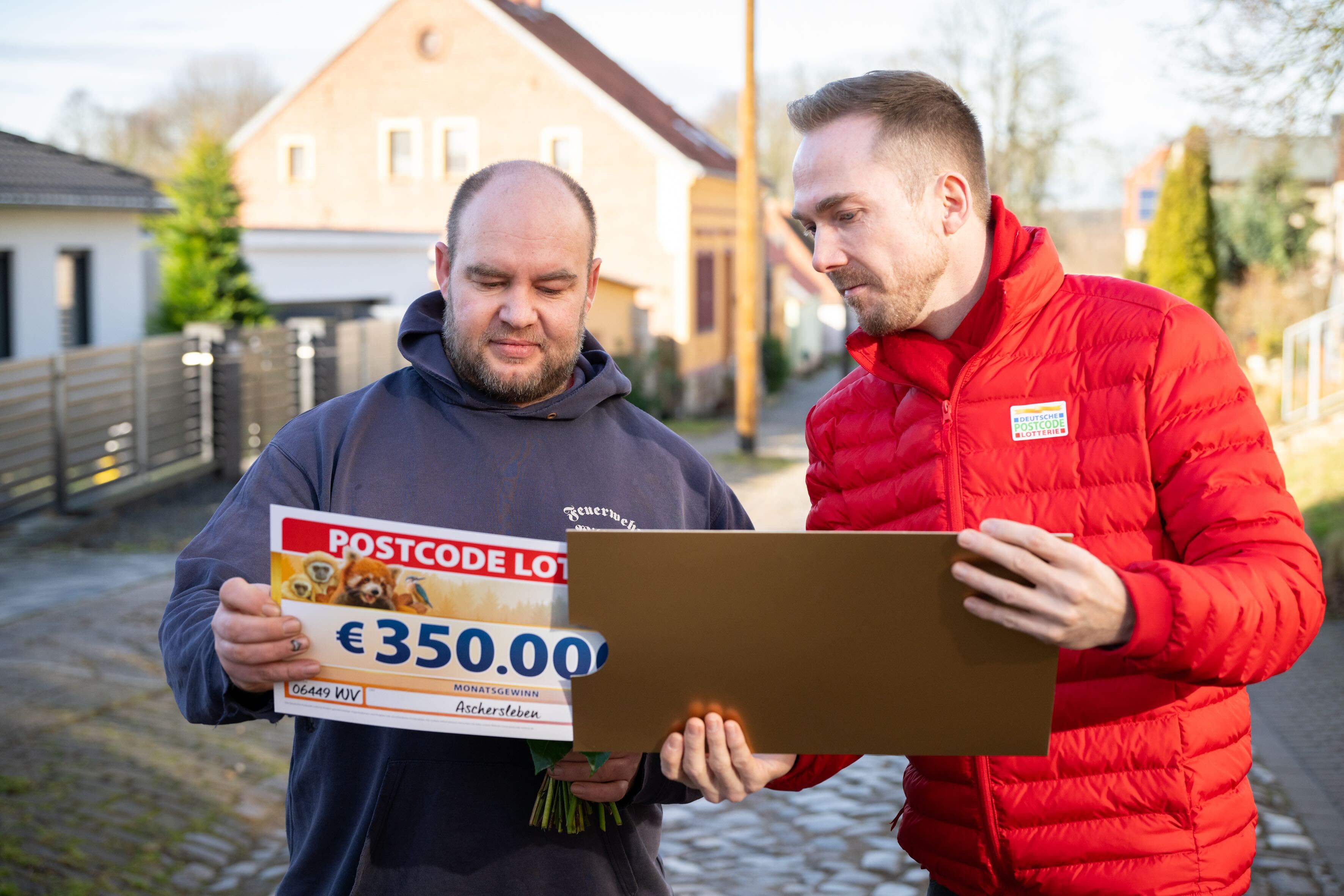 Auch Normens Bruder Patrick* muss sich über Geld wohl erst einmal keine Sorgen mehr machen. Der 40-Jährige wohnt im selben Haus wie sein jüngerer Bruder, hat somit denselben Postcode 06449 WV – freut sich dank seiner zwei Lose bei der Postcode Lotterie aber über sogar 350.000 Euro. Patrick möchte sich ein neues Auto kaufen, der Rest seines Gewinns aber sparen. Und außerdem, so sein Bruder Normen, ginge es bei der Soziallotterie ja nicht nur ums Gewinnen, sondern auch um den guten Zweck: „Ich habe mir das Los gekauft, weil ich das gut finde, dass von dem Geld auch was gespendet wird.“