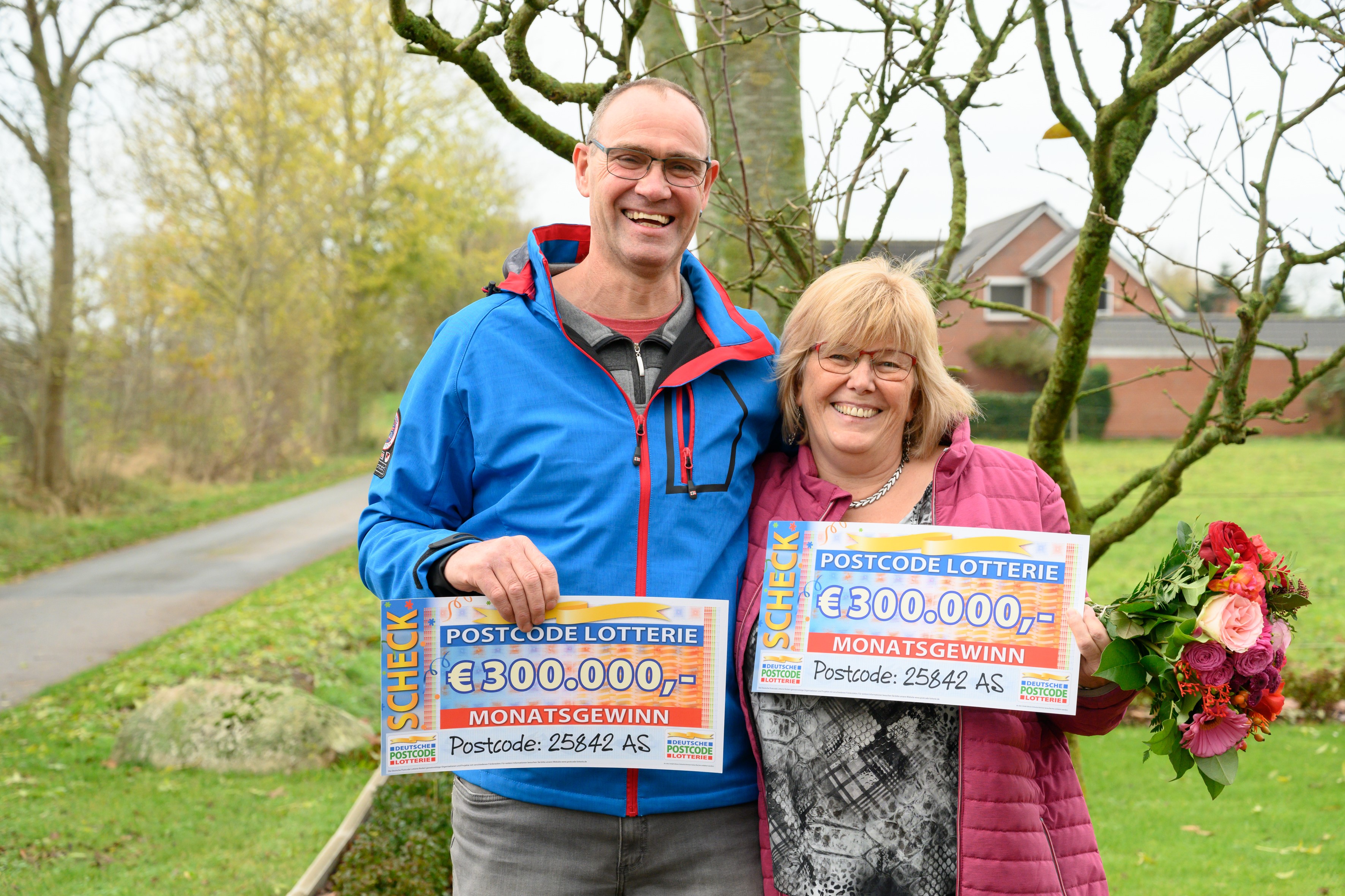 Doch Torsten hat nicht alleine gewonnen. 81 weitere Glückspilze aus der Postleitzahl 25842, und damit den Nordseeküsten-Orten Bargum, Langenhorn, Lütjenholm und Ockholm gewinnen gemeinsam die andere Hälfte der 1,2 Millionen Euro – also ebenfalls 600.000 Euro. Ein großes Gewinnerfest, eine Postcode-Party an der Nordseeküste, ist wegen Corona leider nicht möglich. Darum zieht das Team der Soziallotterie am Samstag von Tür zu Tür, um die vielen Schecks und Blumensträuße zu verteilen.