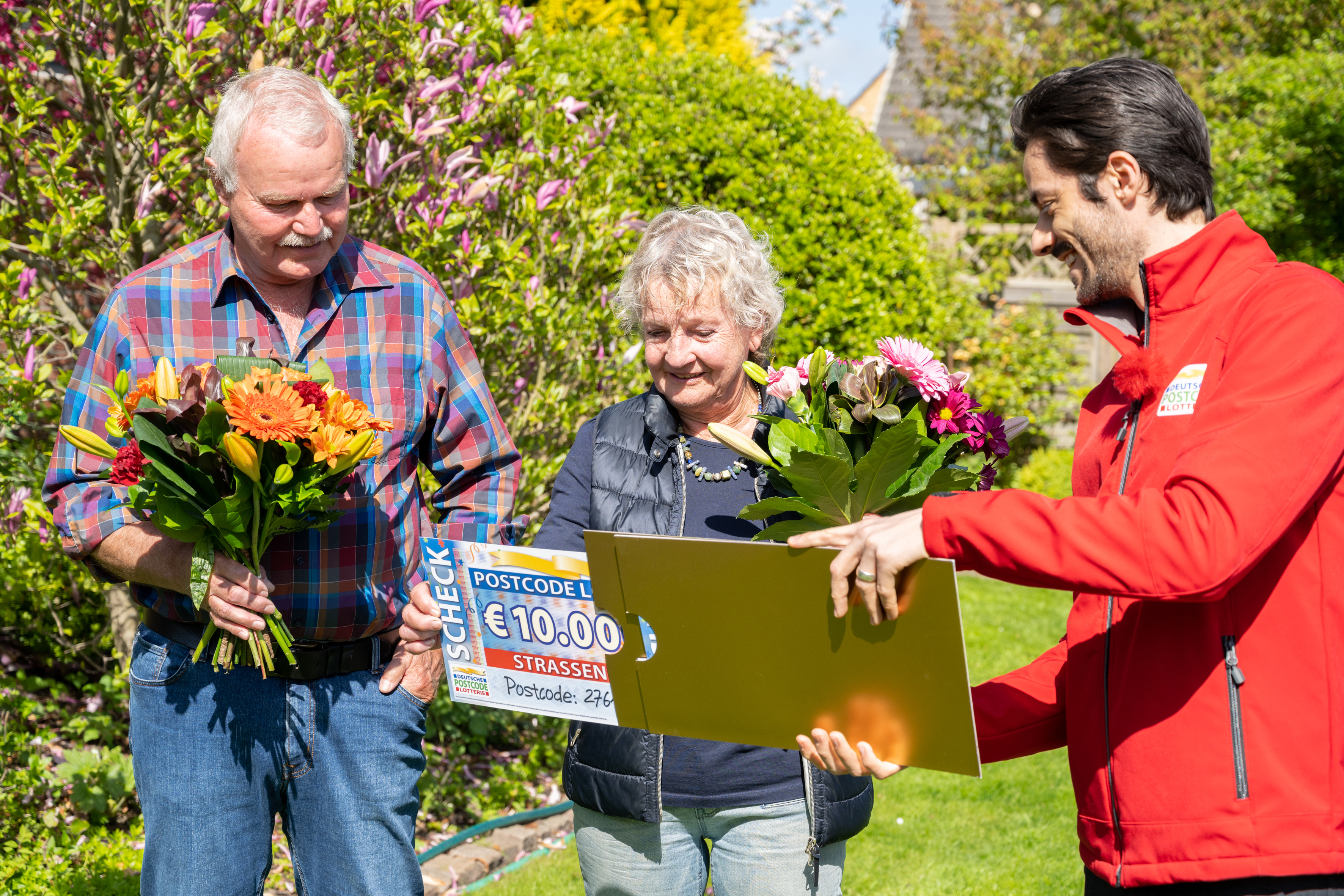 Jutta* strahlt über das ganze Gesicht, als sie ganz langsam einen großen Scheck aus einem goldenen Umschlag zieht und zum ersten Mal die Gewinnsumme von 10.000 Euro sieht. Und es kommt noch besser für das niedersächsische Ehepaar, denn auch Klaus-Dieter* hat sich vor drei Monaten für ein Los der Deutschen Postcode Lotterie entschieden und erhält ebenfalls einen Scheck über die gleiche Summe. „Wir freuen uns, das ist klar – so kurz dabei und gleich ein Gewinn, das ist unglaublich“, erzählt die 75-jährige Hobbygärtnerin, die schon lange von einem neuen Gewächshaus träumt. „Der Gewinn hat nie im Vordergrund gestanden, da rechnet man ja auch gar nicht mit“, sagt die sympathische Rentnerin und Klaus-Dieter ergänzt: „Für mich war es am wichtigsten, dass soziale Projekte unterstützt werden und dass man in einer Gruppe gewinnen kann, weil eben die Postleitzahl eine Rolle spielt.“