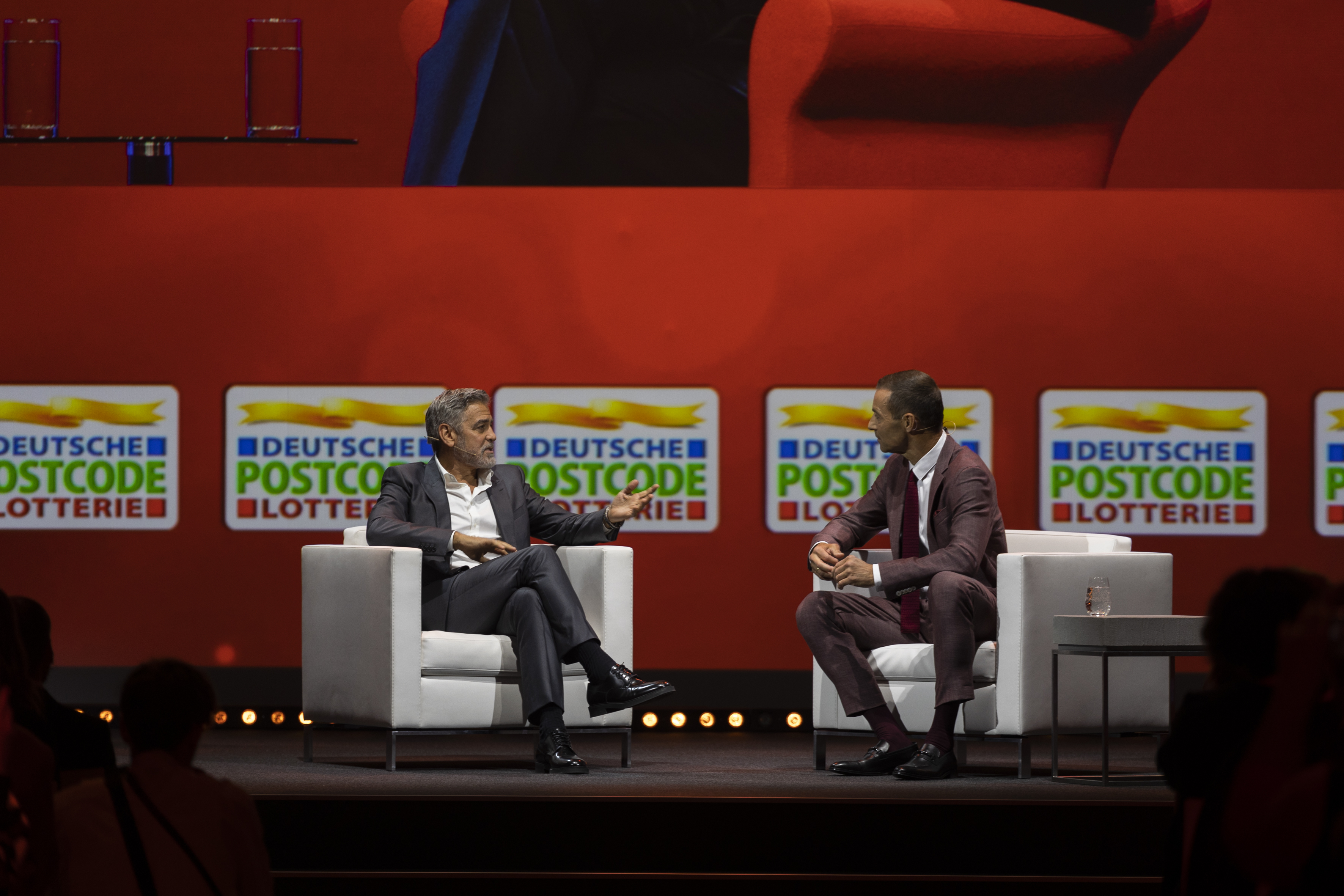 In einem Interview mit Lotterie-Botschafter und Gala-Moderator Kai Pflaume sprach George Clooney darüber, wie wichtig es ist, sich für Menschenrechte einzusetzen: „Was die internationalen Postcode Lotterien jeden Tag tun, ist großartig. Denn Menschen können nicht nur zusammen gewinnen, sie können auch zusammen helfen und tausende von Projekten unterstützen. Und bei all den furchtbaren Dingen, die an vielen Orten dieser Welt geschehen, ist es gerade heute wichtig, die Aufmerksamkeit auf Menschenrechte zu lenken.“ Der Schauspieler und Regisseur ist Menschrechtsaktivist und hat zusammen mit seiner Ehefrau Amal die Clooney Foundation for Justice gegründet, die sich für Gerechtigkeit durch Rechenschaftspflicht für Menschenrechtsverletzungen auf der ganzen Welt einsetzt. Clooney ist internationaler Botschafter der Postcode Lottery Group.