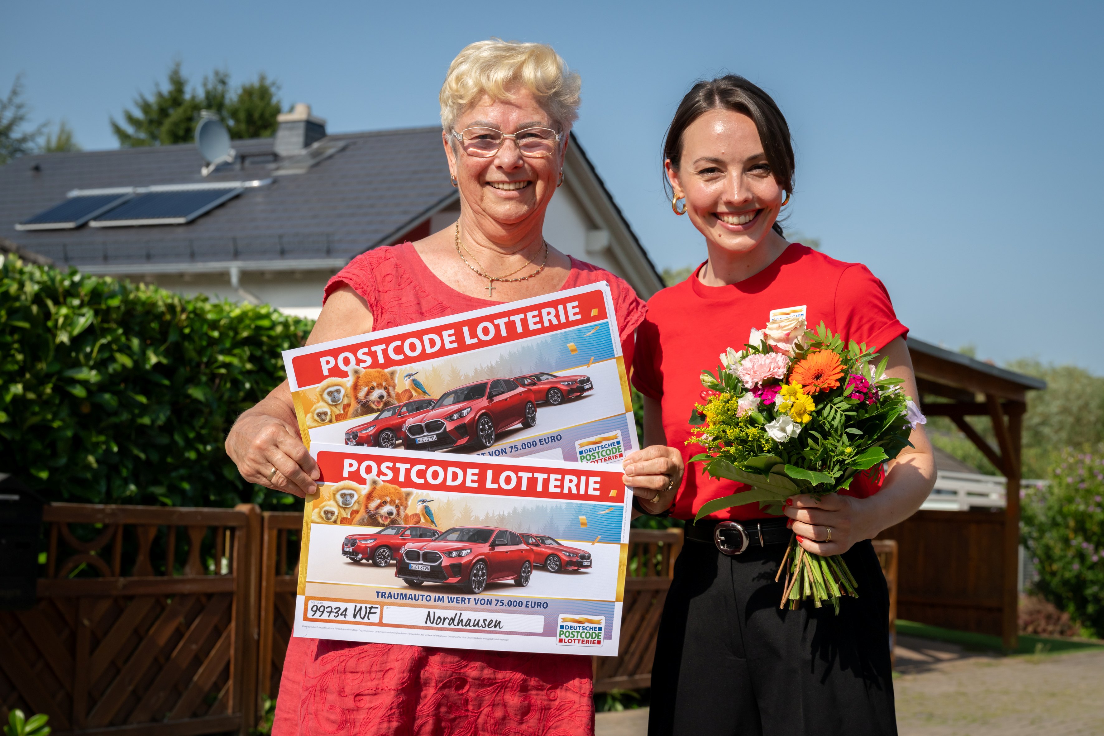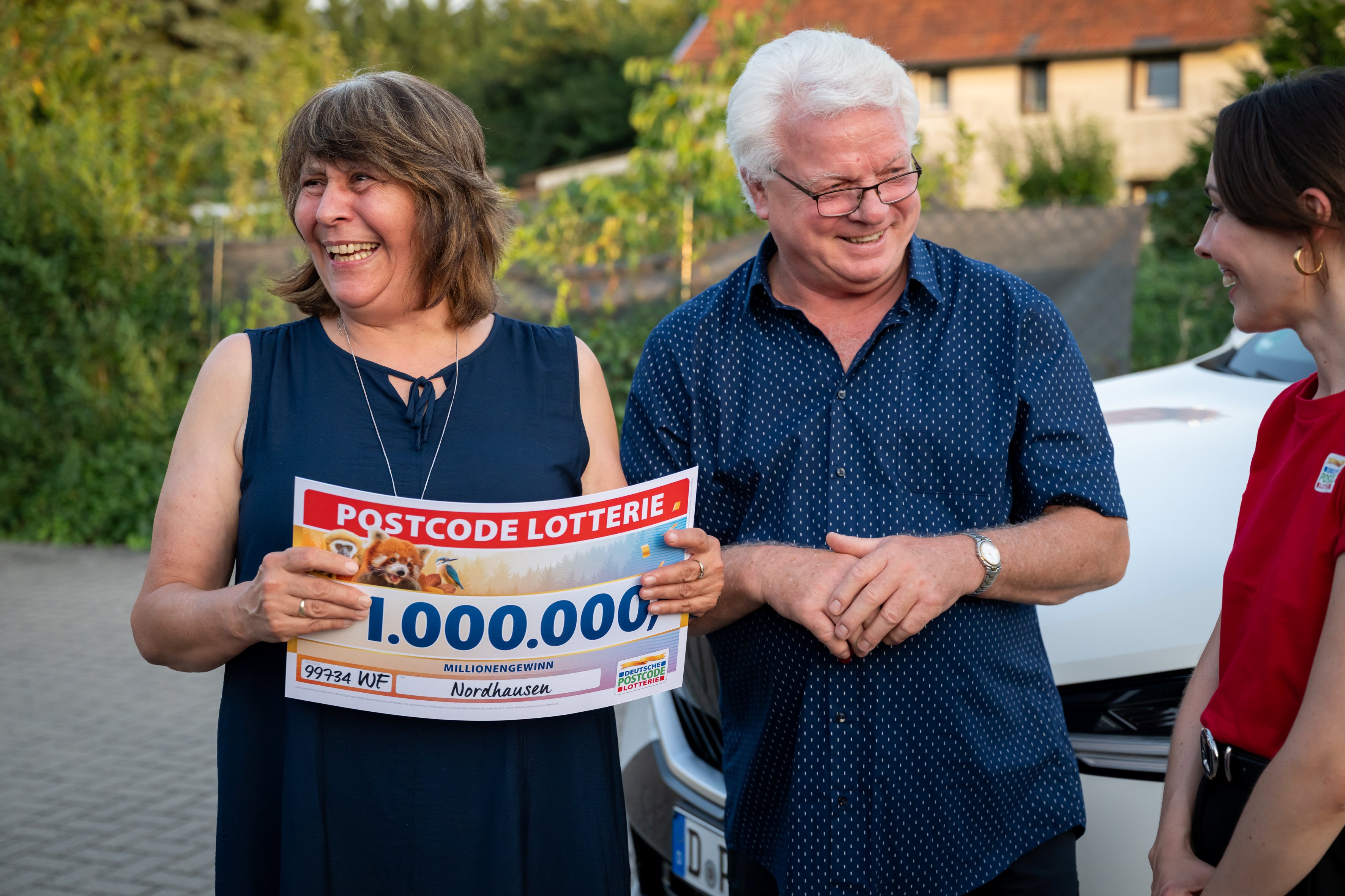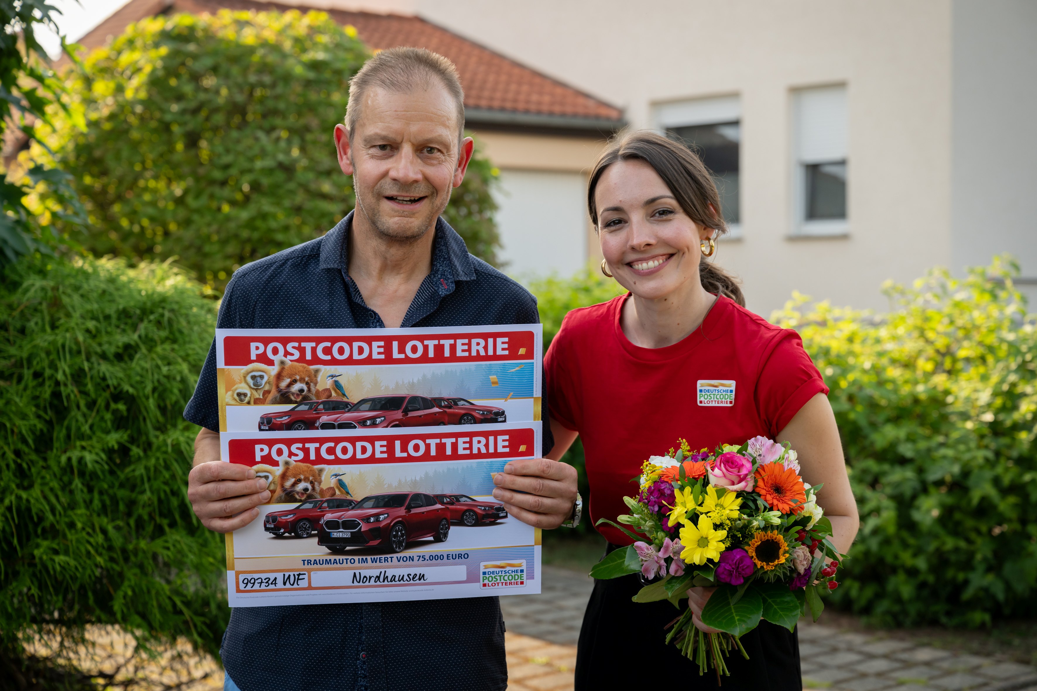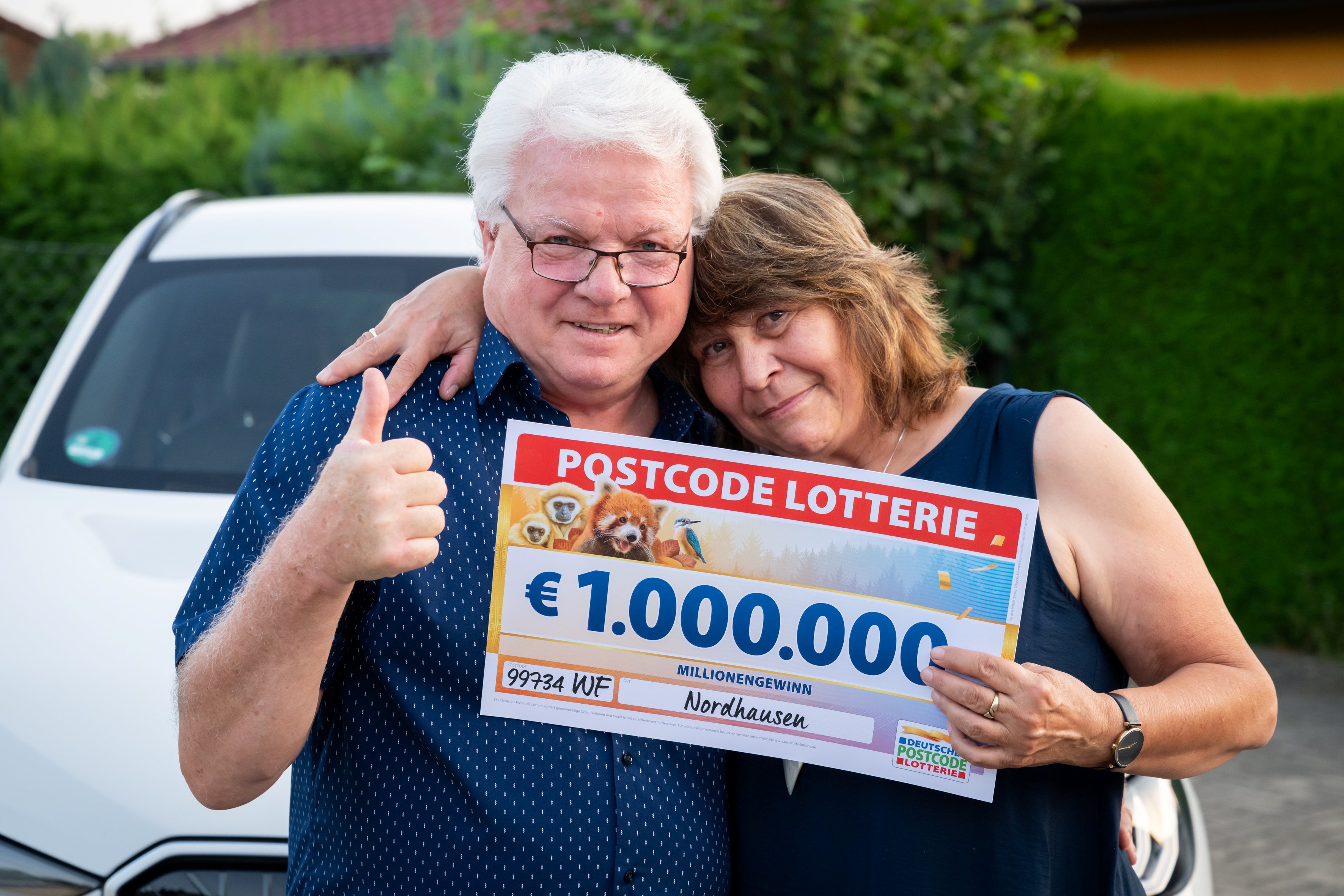 Die Deutsche Postcode Lotterie hat am Mittwoch im Rahmen einer Sonderverlosung einen Glückspilz im thüringischen Nordhausen zum Millionär gemacht. Lutz* freute sich dank seines gezogenen Postcodes 99734 WF über einen Scheck in Höhe von einer Million Euro – und außerdem noch über einen nagelneuen BMW im Wert von 75.000 Euro. Der 65-Jährige war aber nicht der Einzige, der am Mittwoch jubeln durfte.
