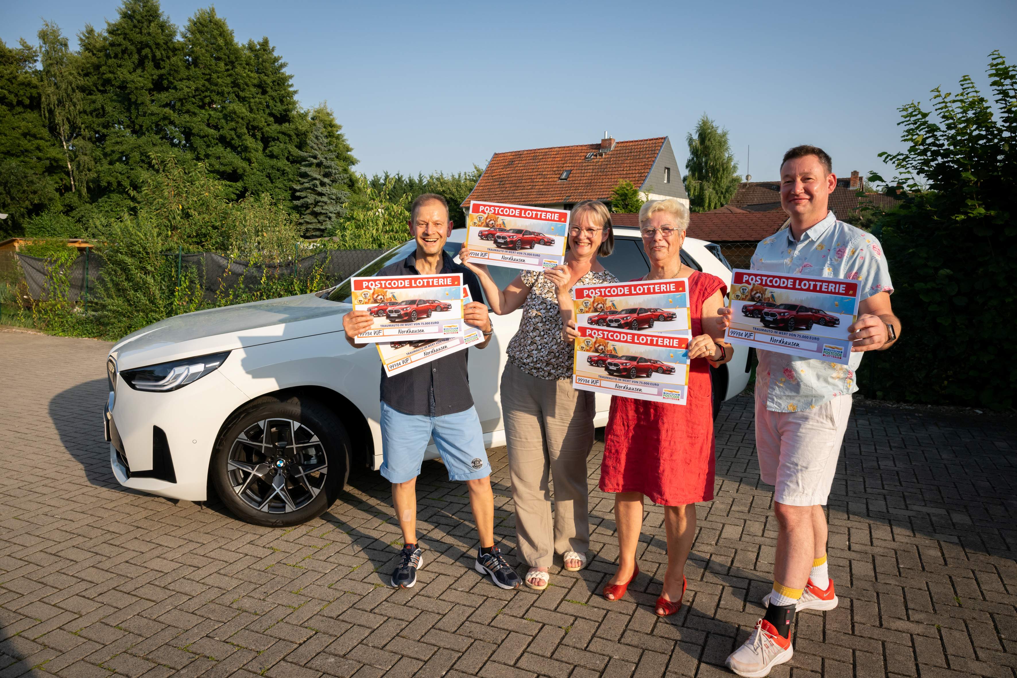 Die beiden Traumpreise sind Teil einer Sonderverlosung der Deutschen Postcode Lotterie. Bei der August-Ziehung hatten alle Teilnehmer*innen der Soziallotterie die Chance, eine Million Euro und gleichzeitig einen BMW zu gewinnen. Die Million und ein Auto gingen an Lutz. Weil aber auch einige seiner Nachbar*innen Lose bei der Soziallotterie haben, freuten sich auch Rositta*, Stephanie*, Elke*, Mario* und Sven* dank des Gewinner-Postcodes 99734 WF über insgesamt sieben BMW.